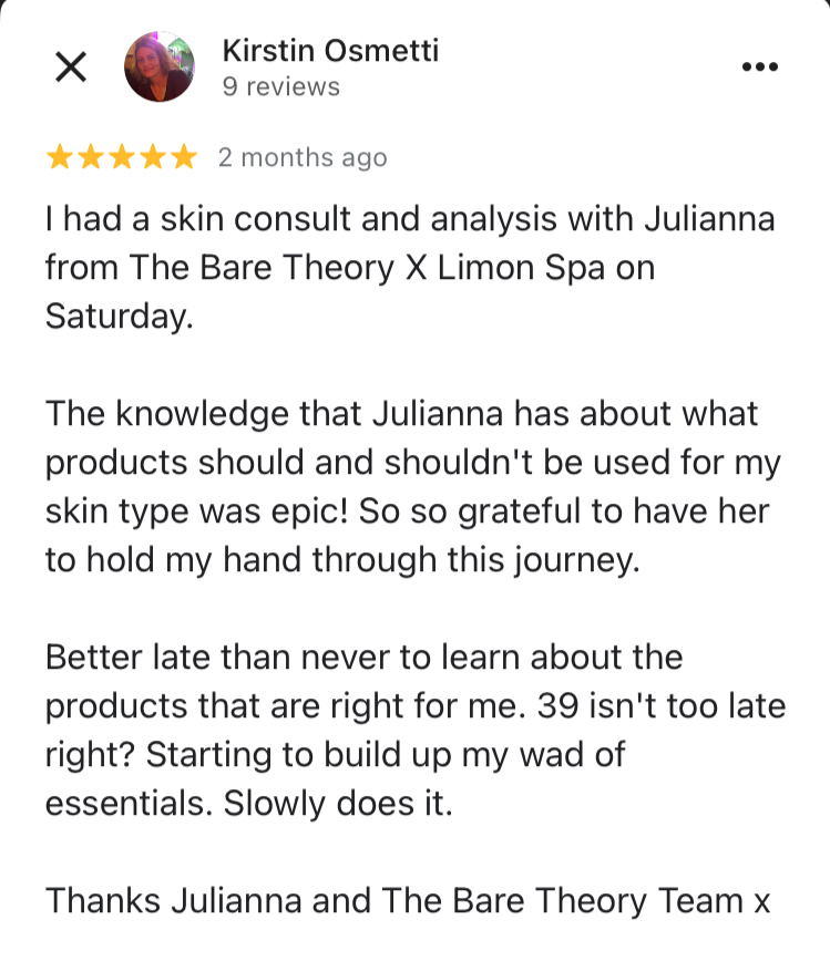 I owned my own day spa for nine years and a retail shop for four years. After becoming a mother, I decided it was time to redefine my career to better suit my new life and family. Alongside this, I faced my own health challenges—food intolerances, leaky gut, SIBO, inflammation, and joint pain—which required me to pause, heal, and reshape my profession. This ongoing journey has allowed me to dig deeper into the powerful connection between internal health and the skin.